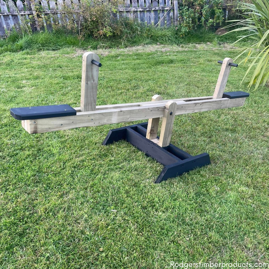 Handmade Wooden Seesaw with Black Handles & Base